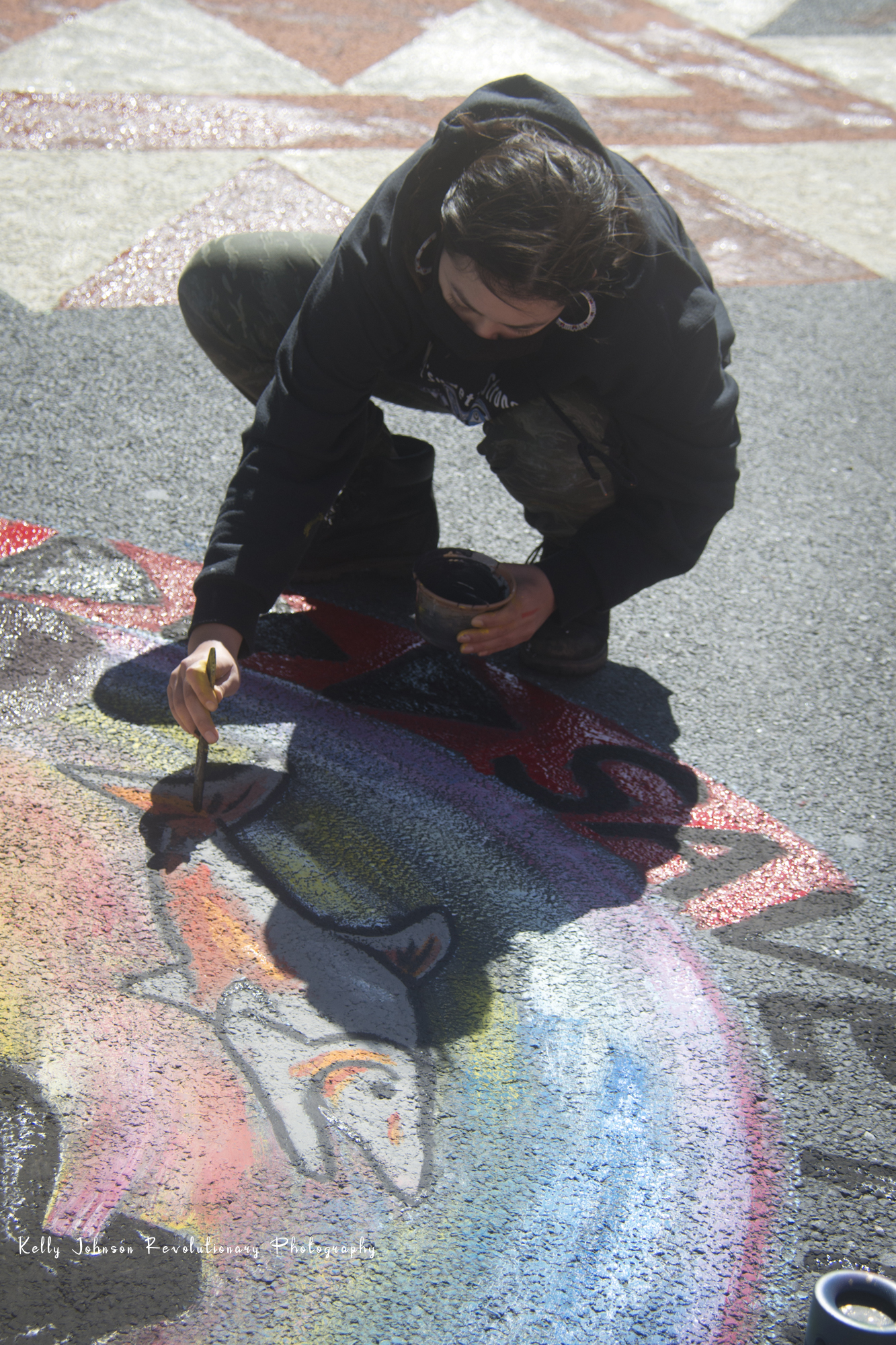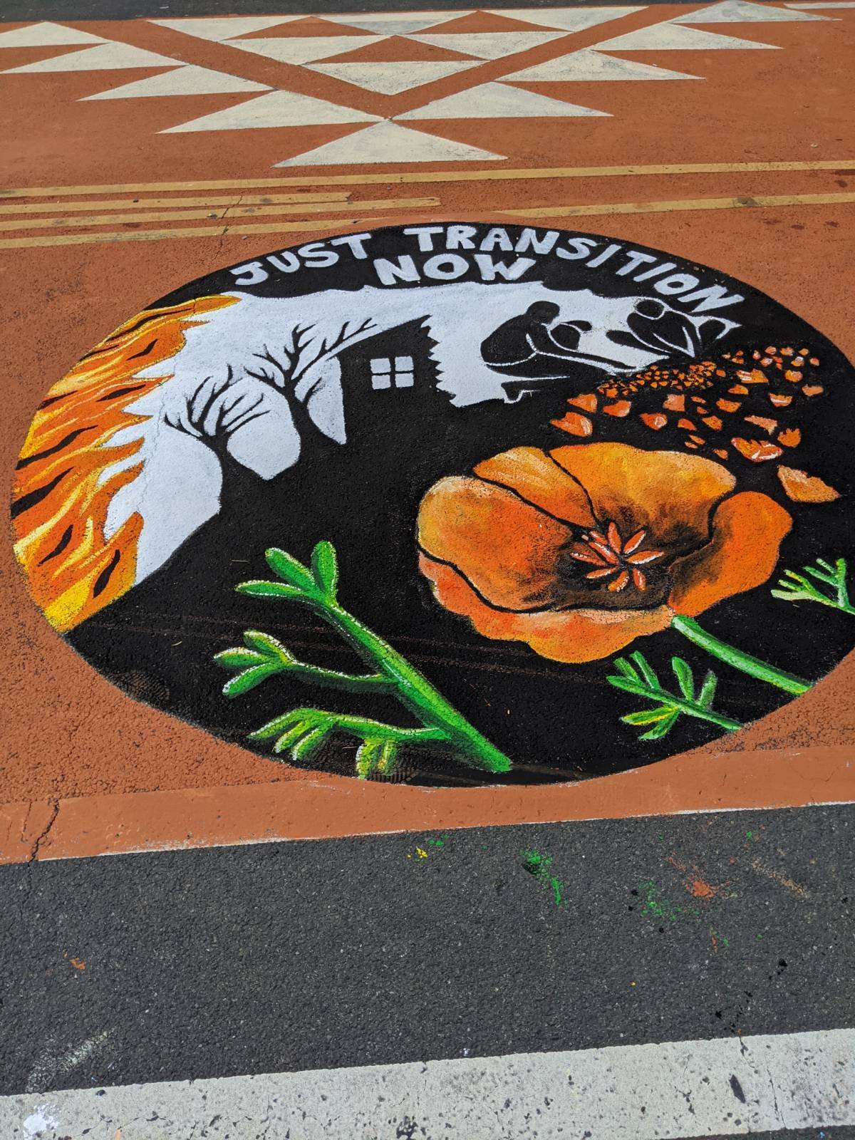 This event was in response to a call from Indigenous leaders to stand in solidarity with the Water Protectors. The large street mural painted covered two city blocks with artistic mandalas and the words: STOP LINE 3 & DAPL - BUILD BACK FOSSIL FREE.