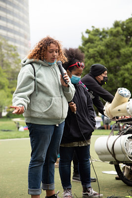 Here are some of the photo highlights of the event which began at Snow Park, and continued on a parade to the Lake Merritt Amphitheater. Some of the day’s events included a guided meditation and grounding to the Earth led by Viveka Chen, chalk graffiti zone by Climate Creative, and sound for the 14 speakers was provided by Distributed Sound Collective. The speeches were so personal and powerful – they spoke to this very moment. The fantastic Sandra Kwak entertained us throughout the day with announcements and songs from her musical group The Seastars. We are working on more media to share the words, thoughts and expressions with you.