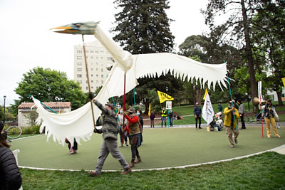 We ended with a candle lit vigil at the lake. It was grey and windy but we had nearly around 70 people dedicated and still hanging in; we set up a giant crane puppet as the stage to close out the day. We were thrilled to do so on the U.S.’s first ever legally-preserved natural habitat for migratory birds, Lake Merritt.