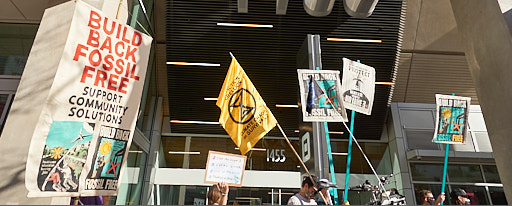 Extinction Rebellion San Franciso Bay Area and allies showed up in downtown San Francisco in solidarity with the Indigenous-led resistance to the Line 3 and Dakota Access oil pipelines. We visited two US Army Corps of Engineers offices to make some noise and demand that the Biden Administration live up to their climate justice promises – #StopLine3 and #ShutdownDAPL!