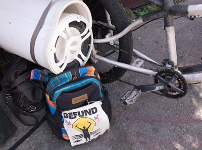At the event, David Solnit performed a Cantastoria, a short spoken-word, giant-picture-story: “Line 3; Keep It In the Ground”, illustrated with papercuts by Jan Burger of Paperhand Puppet Intervention. Sandra and Ilana of The Seastars performed the world premiere of a new song. DJ CUTTaRUGG brought the tunes and kept us moving. The San Francisco Poster Syndicate set up a screen printing station and handed out awesome protest art. Coming together and collaborating creatively as a community is vital to confronting the climate and ecological emergency!