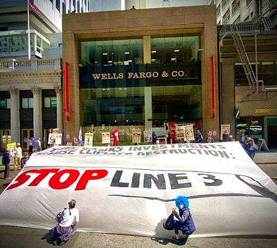 On Friday, September 17, 2021, dozens of climate activists converged on the world headquarters of Wells Fargo in downtown San Francisco to kick off a new round of actions demanding that Wells stop funding fracking and tar sands – and invest instead into energy and the green economy.
