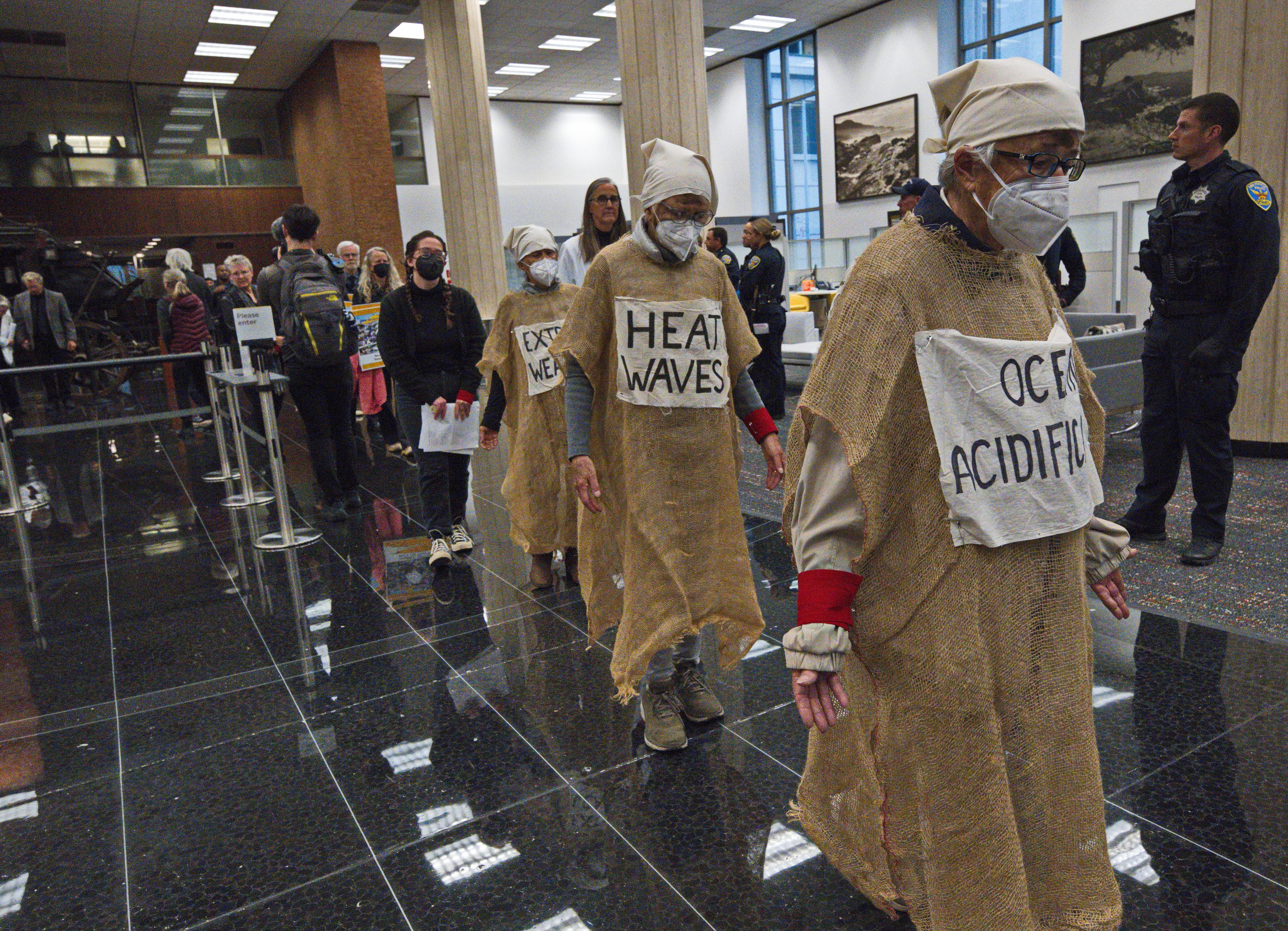 On April 24, seven local activists were arrested for occupying the lobby of Wells Fargo branch at 464 California Street, San Francisco after 30 concerned citizens conducted a solemn vigil to highlight the interconnectedness of environmental injustices and financial misconduct.